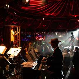 **Wat kun je verwachten?** Internationale burlesque-sterren, spectaculaire acrobatiek en fantasierijke ensceneringen – begeleid door de energieke liveband. In totaal staan er elke avond zo'n 20 artiesten op het podium en nemen ze je mee naar een wereld tussen variété, circus en glamour. **Drie acts. Vier gangen. Een onvergetelijke avond.**