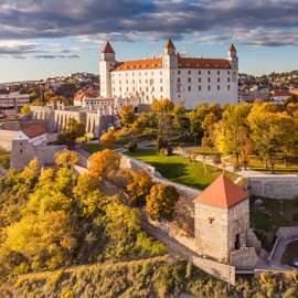 Je avontuur begint in Bratislava, de charmante hoofdstad van Slowakije. Hier neemt je gids je mee op een ontspannen wandeling door de historische binnenstad en het kasteelgebied, en deelt verhalen die de stad tot leven brengen. Je ziet elegante pleinen, middeleeuwse torens en een prachtig uitzicht over de Donau. Later op de dag kom je terug voor wat vrije tijd om in je eigen tempo van de stad te genieten — of je nu wilt dineren, winkelen of gewoon ontspannen langs de rivier.