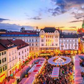 Een ontspannen winterdagtour van Wenen naar Bratislava, gericht op alle kerstmarkten, feestelijke pleinen in de oude stad, lokale gerechten en tradities, met een rondleiding en vrije tijd om te verkennen.