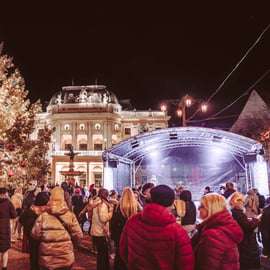 Je hebt vrije tijd op het Hviezdoslav-plein en vlak bij de Michalská-brug, zodat je zelf de verschillende delen van de kerstmarkten kunt verkennen. Dit gebied verbindt meerdere feestelijke zones, waardoor het ideaal is om handgemaakte cadeaus te bekijken, te genieten van eten en drinken, foto's te maken of gewoon in je eigen tempo door verlichte straten te wandelen.