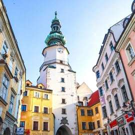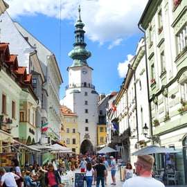 Vanuit Hainburg steek je de grens over naar Slowakije en kom je aan in Bratislava, een stad die zowel koninklijk als ontspannen aanvoelt. Verken met je lokale gids de oude stad, een doolhof van geplaveide straten vol kleurrijke gevels, fonteinen en eigenzinnige standbeelden. Bekijk de Michael's Gate, de laatste van de middeleeuwse stadspoorten, en St. Martin's Cathedral, waar Hongaarse koningen ooit werden gekroond. Wandel over het levendige hoofdplein, bewonder het elegante Primatenpaleis en passeer het oude stadhuis en het nationale operahuis — elke hoek zit boordevol charme en verhalen.