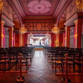 Laat je begeleiden door de muziek van Strauss, Lanner en Ziehrer terwijl je door de elegante kamers en historische tentoonstellingen wandelt. De rondleiding wordt afgesloten met een spectaculaire audiovisuele show in de originele concertzaal – een emotioneel eerbetoon aan Johann Strauss Jr., de walser, dat tot leven komt door middel van muziek, licht en projecties.